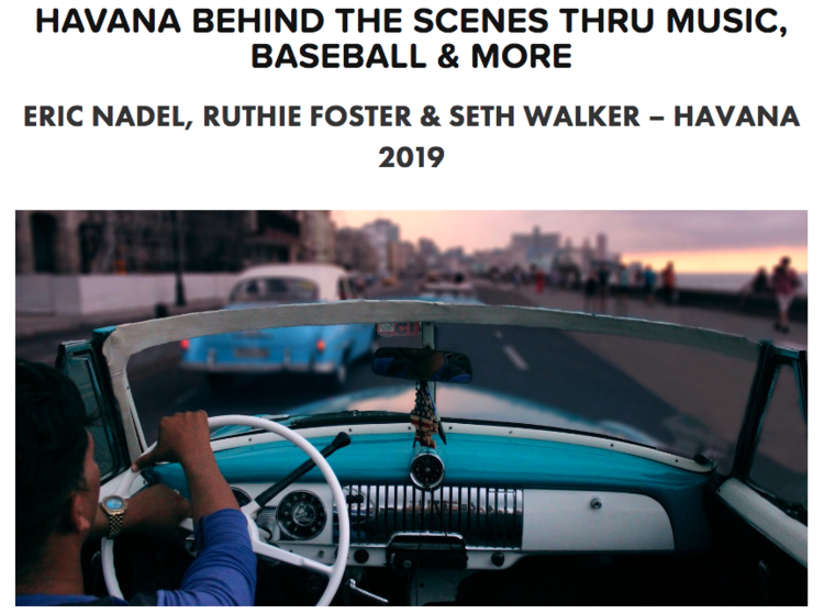 Join Ruthie, Eric Nadel, and Seth Walker in Havana for the trip of a lifetime, February 6-12, 2019! For a full look at the itinerary for this action-packed trip, including the perfect blend of music, sports, and tourism, click here!
